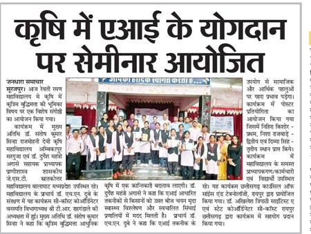 कृषि में एआई के योगदान पर महाविद्यालय में एक दिवसीय सेमीनार आयोजित हुआ।
