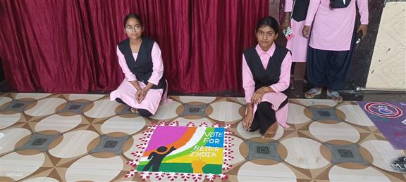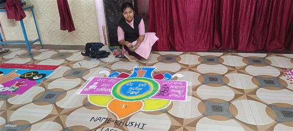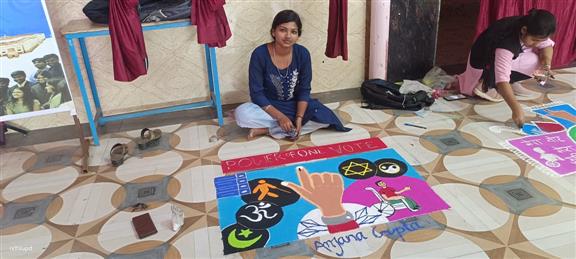 स्वीप के अन्तर्गत मतदाता जागरूकता पर रंगोली का प्रतियोगिता।