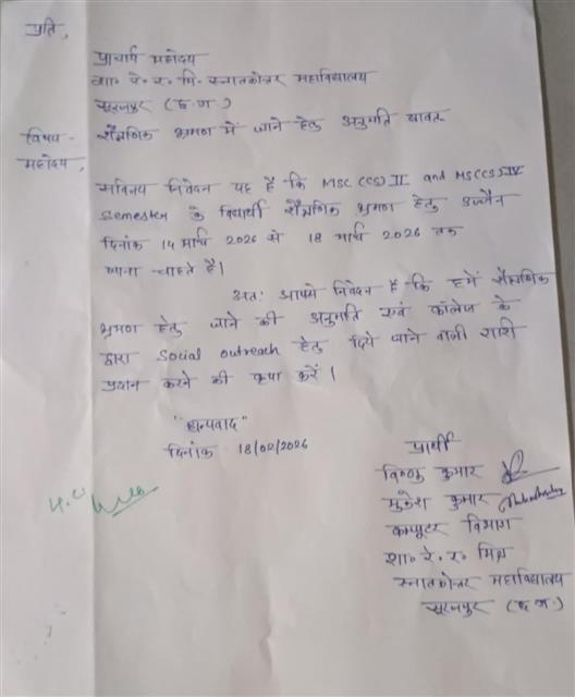 B.Sc.-I Semester & M.Sc. Botany- I Semester के रिक्त सीटों में प्रवेश हेतु आवेदन फॉर्म जमा करने