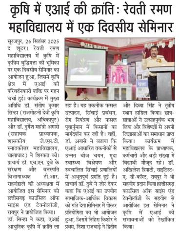 कृषि में एआई के योगदान पर महाविद्यालय में एक दिवसीय सेमीनार आयोजित हुआ।