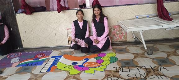 स्वीप के अन्तर्गत मतदाता जागरूकता पर रंगोली का प्रतियोगिता।