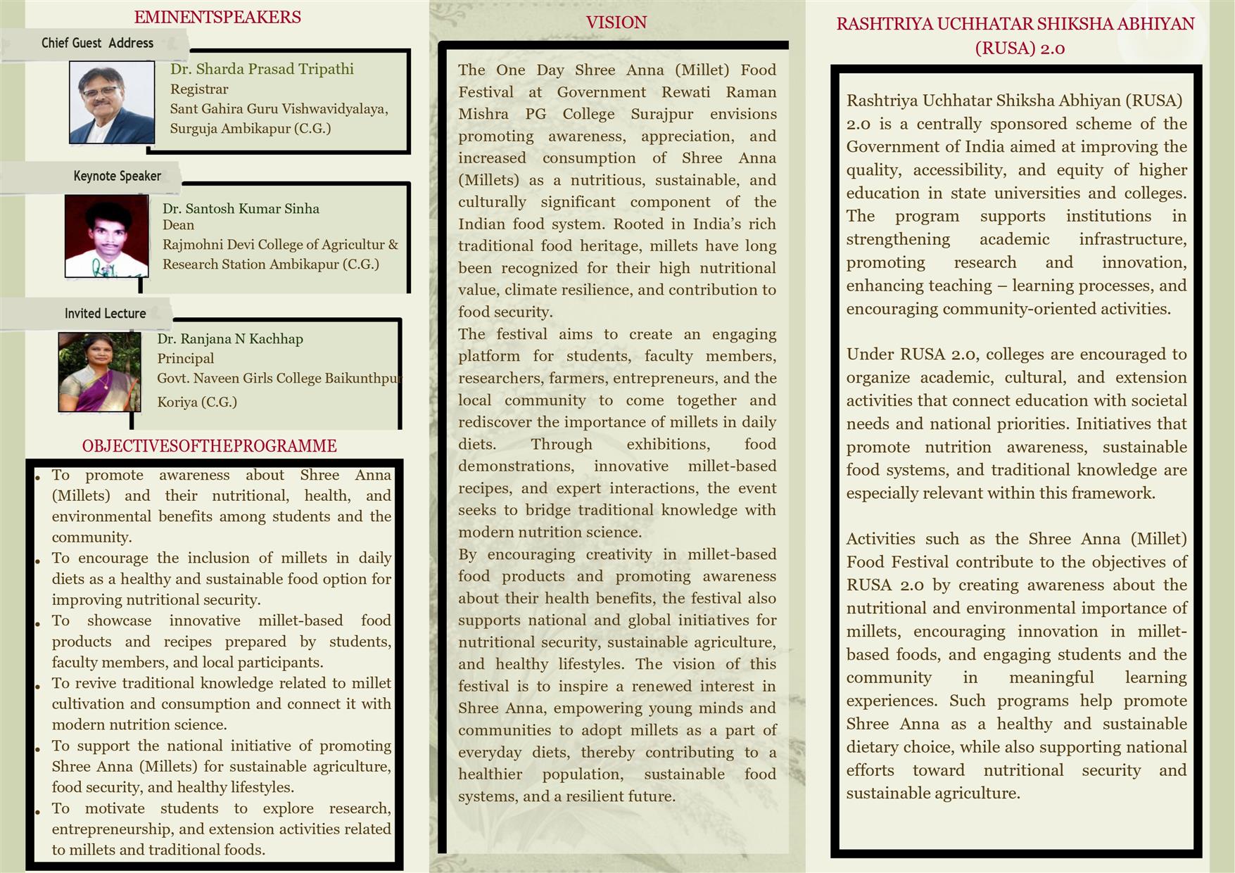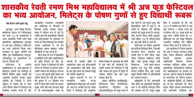 शासकीय रेवती रमण मिश्र स्नातकोत्तर महाविद्यालय सूरजपुर में अन्न फूड (मिलेट्स) फेस्टिवल का भव्य आयोजन किया गया।